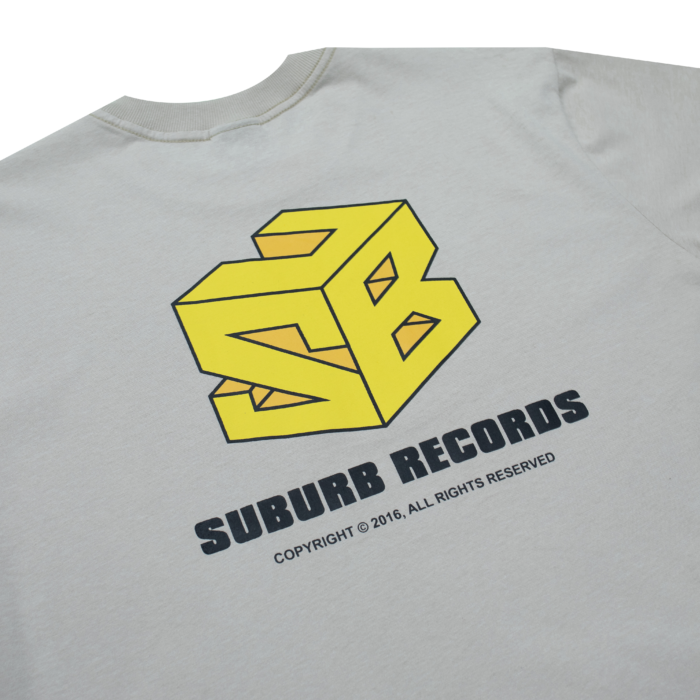 · Etiqueta tecida SUBURB no pescoço interior